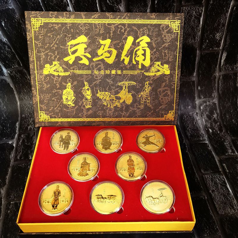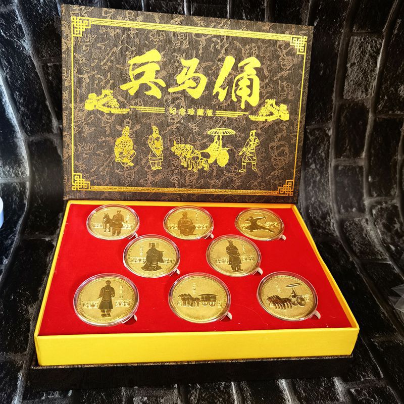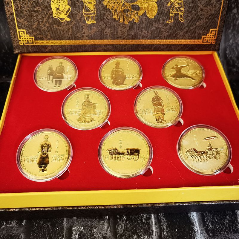Набір монет із 8 теракотових воїнів і коней із Стародавнього міста Сіань (8 шт. набір у коробці) 40*1.5мм