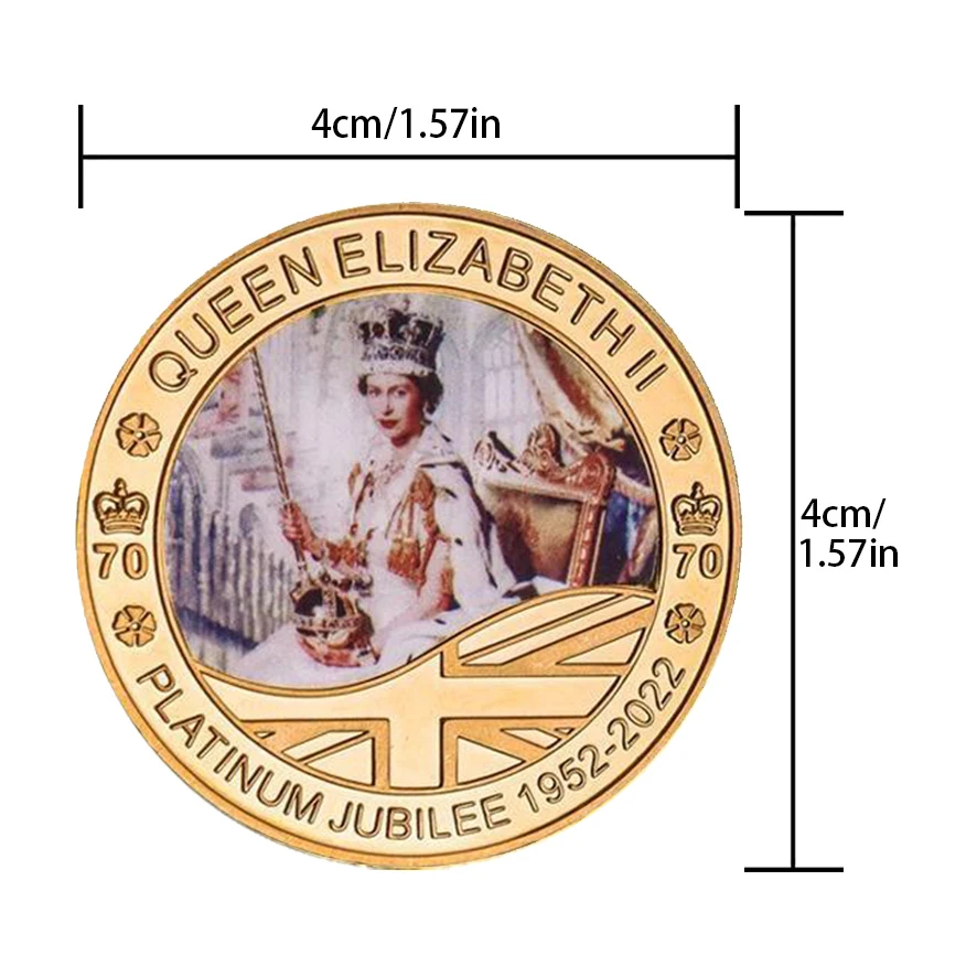 Набір сувенірних монет жетонів серії кор.Элизавети II "70 років Входження на престол" 1952-2022г. 40*3 мм голд.Готово до відправки