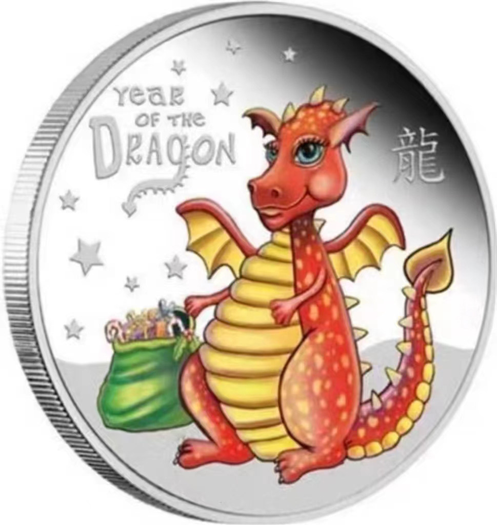 На реверсі монети зображений Мультяшний дракон. У дизайн також додані китайський кантаз «Дракон», напис «DRAGON 2024»