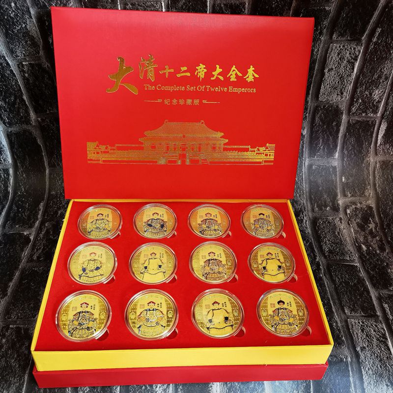 Повний комплект пам'ятних монет медалей «12 імператорів династії Цин» 40*1.5ммГотово до відправки