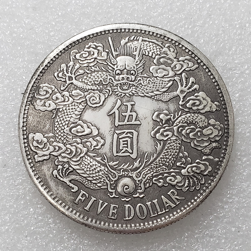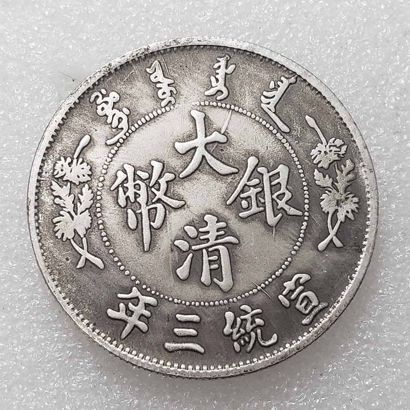 Срібна монета 534 династії Цин (срібна монета із зображенням довгохвостого дракона), випущена в третій рік правління Сюаньтун. на ній були написані маньчжурські та китайські ідежки.
