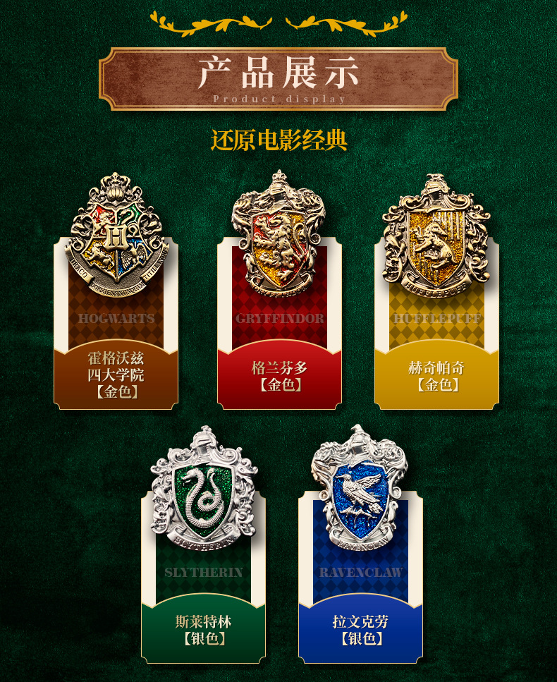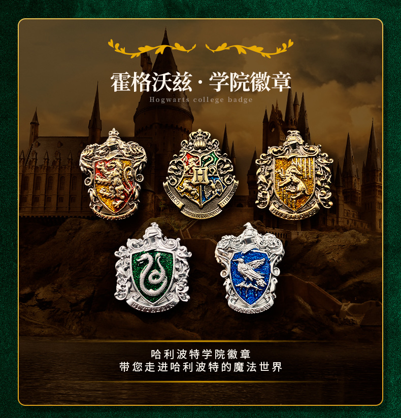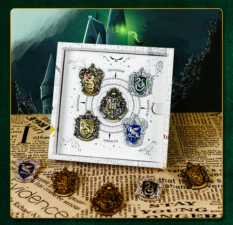 - Реалістично повторюють емблеми з фільму кожного факультету Гоґвортс;