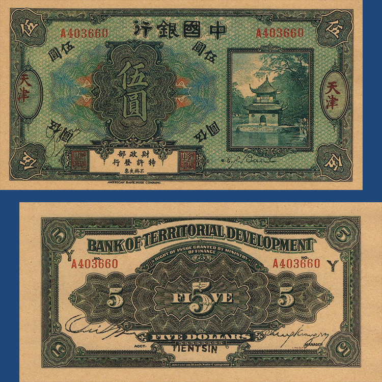 Сувенір банкнота 5 доларів банку Китаю, наддрук для провінції Тяньцзінь