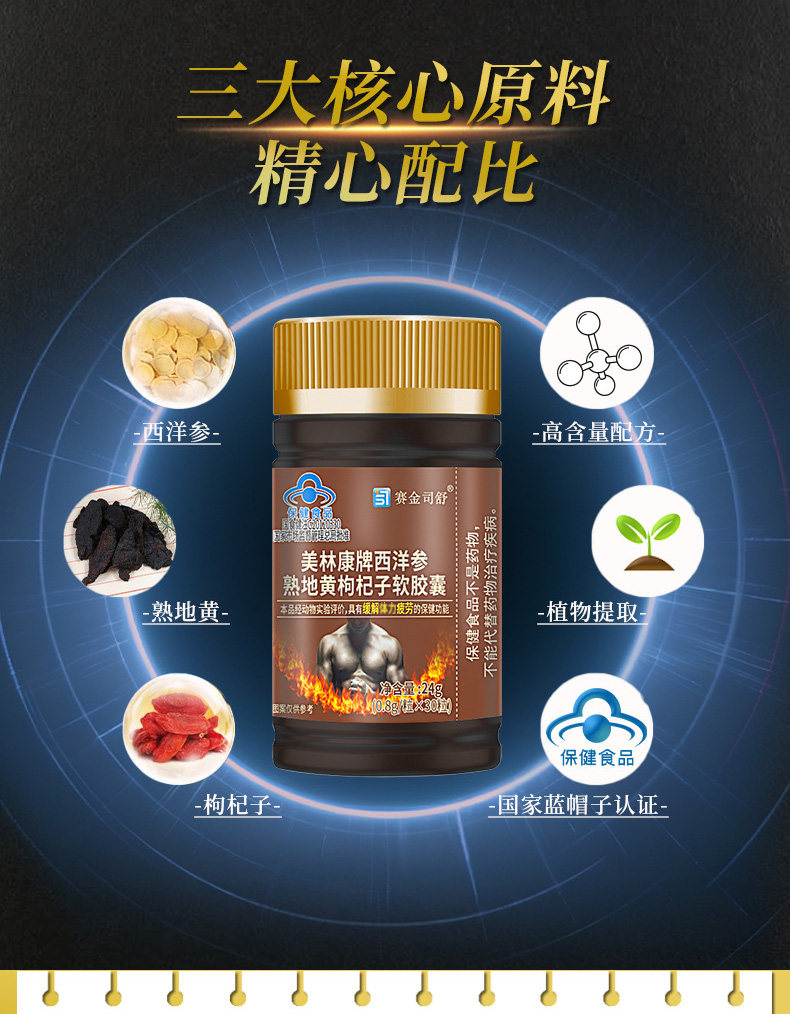 Препарат чоловічої сили та молодості — Американський женьшень, Radix Rehmannia, Wolfberry 30 шт.
