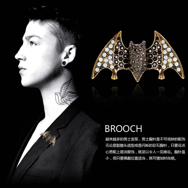 Брошка Кажан Миша чорні стрази, броси значок із крилами кажана