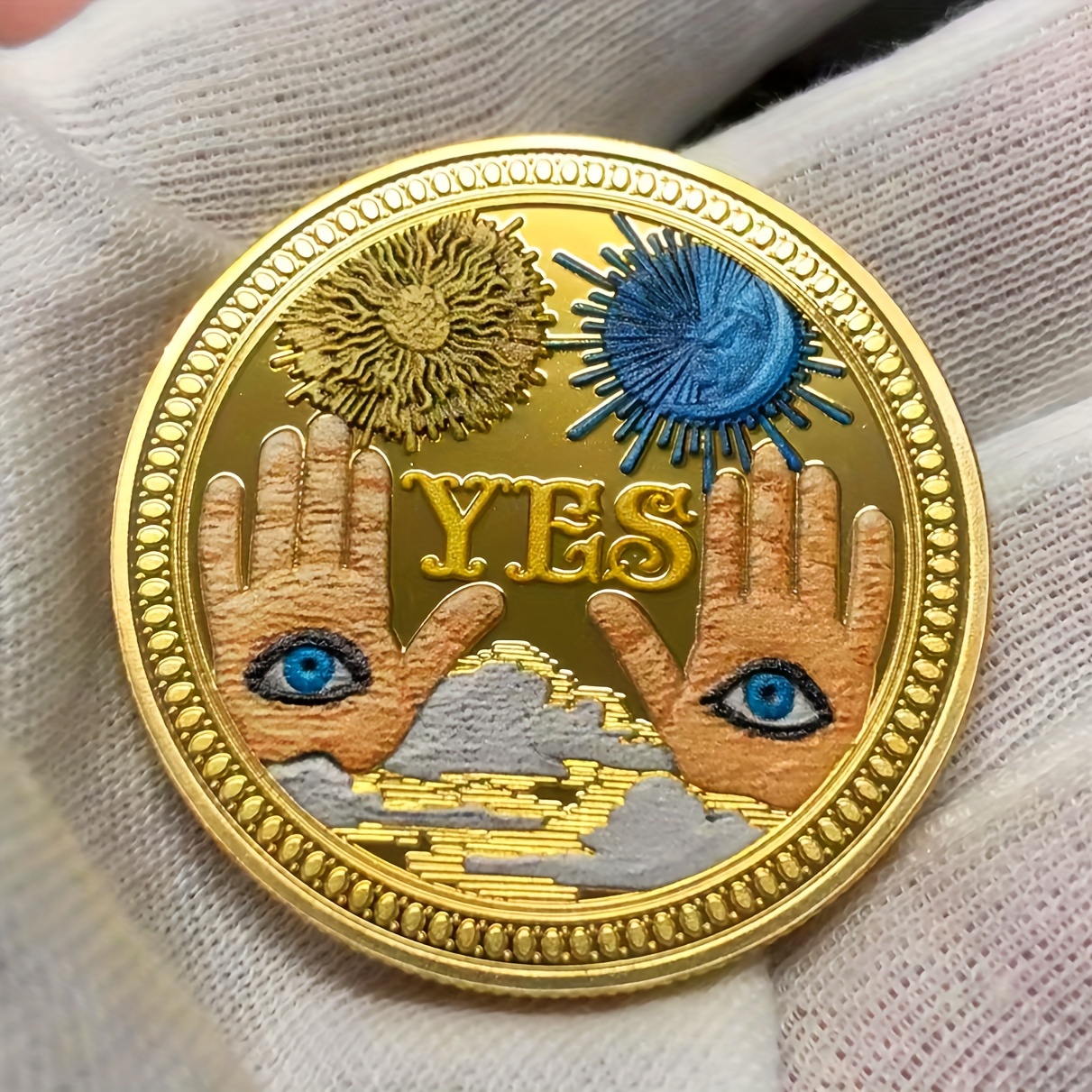 Сувенір кольорова монета прийняття рішень "Так чи Ні "Всевидке Око або Ангел Смерті. Голд
