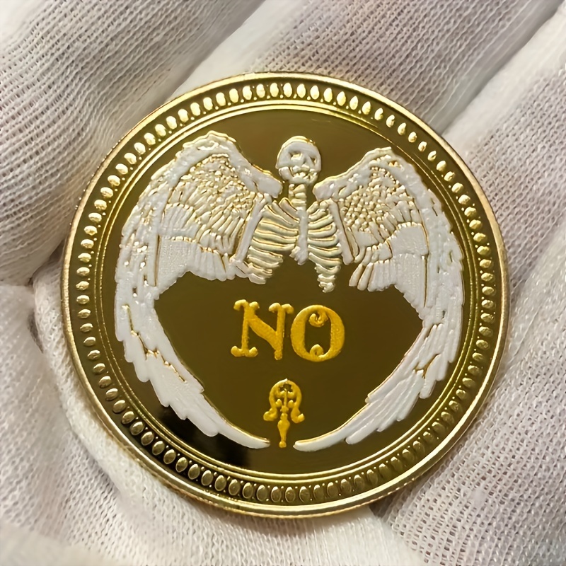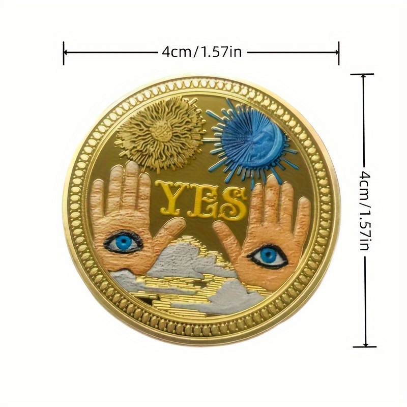Сувенір кольорова монета прийняття рішень "Так чи Ні "Всевидке Око або Ангел Смерті. Голд, фото 1