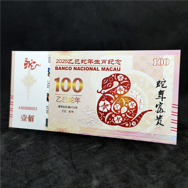 Банкнота Пам'ятна щасливі 100 монет 2025 Макао «54ський гороскоп - Рік Змії», колекційна UNC