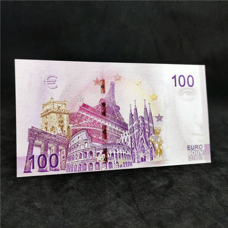 Всі сувенірні євробанкноти, виготовлені у фіолетовому кольорі, схожі на банкноти номіналом 500 євро та мають розмір банкноти номіналом 20 євро.
