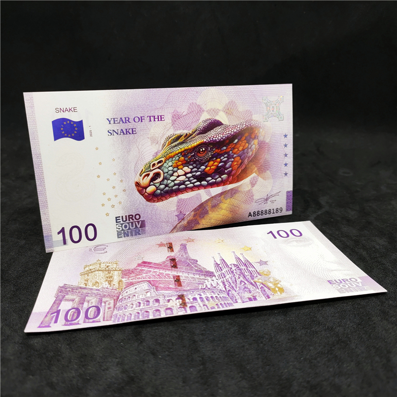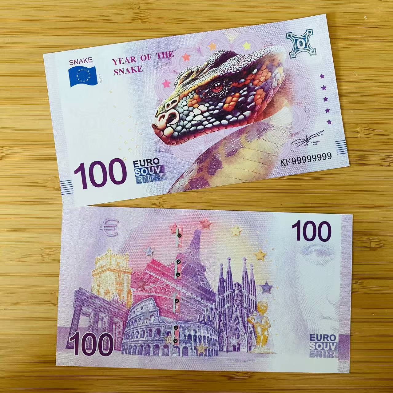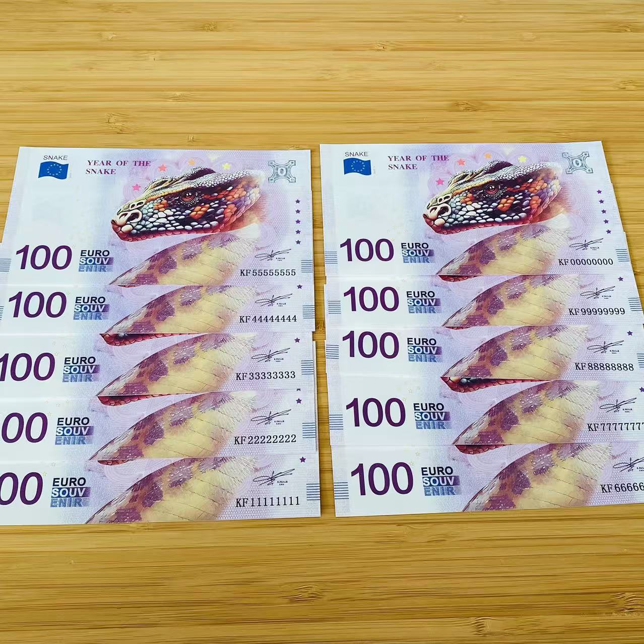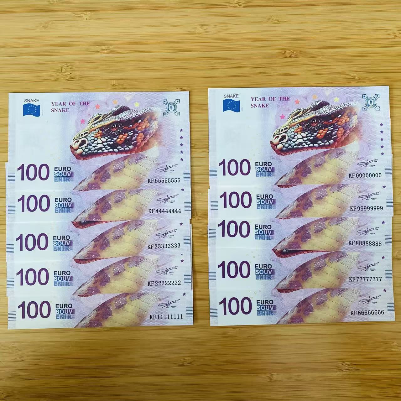 Набір Сувенірних банкнот 100 Euro євро 2025г (10 шт. круглий номер). Китай рік Змії