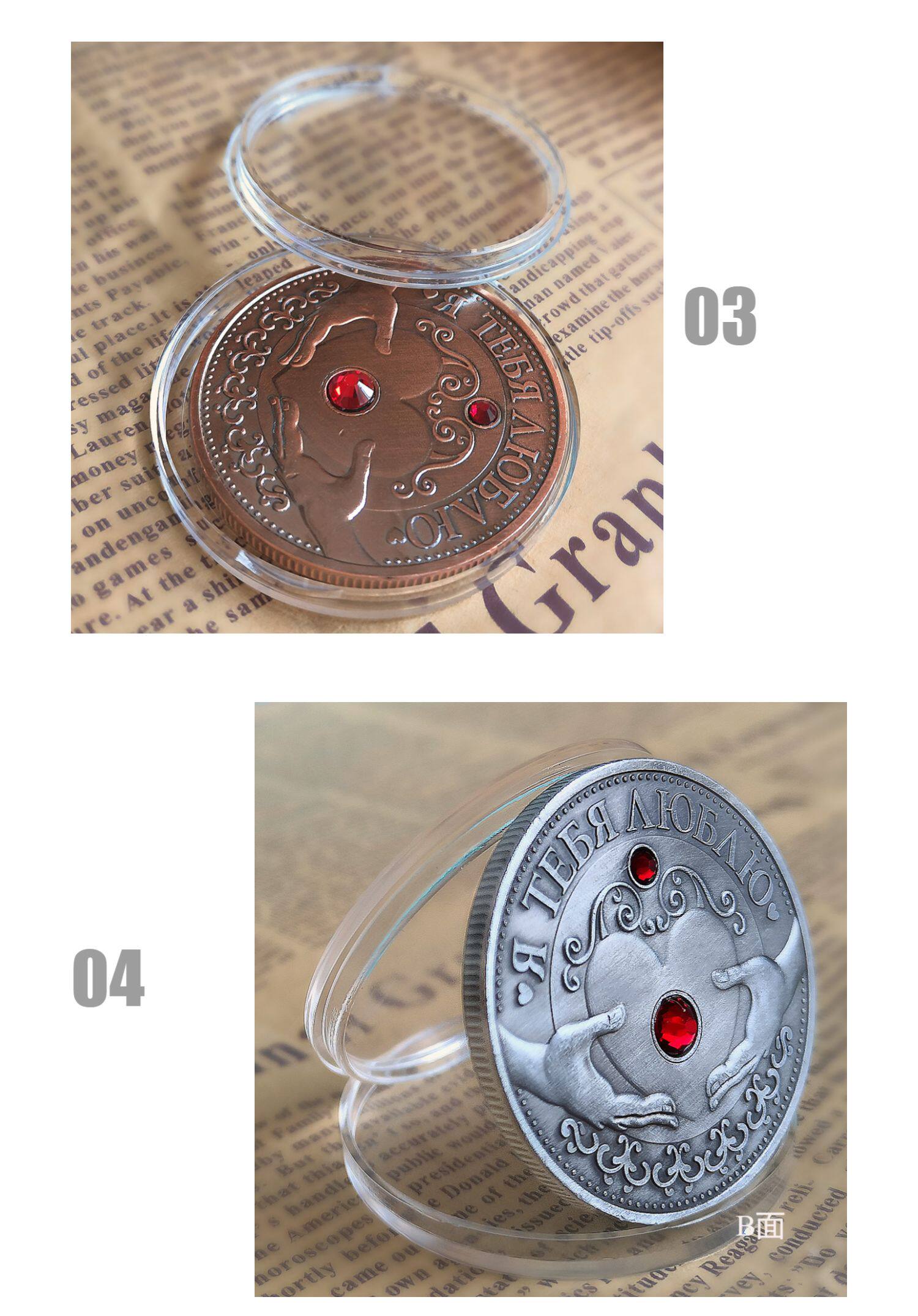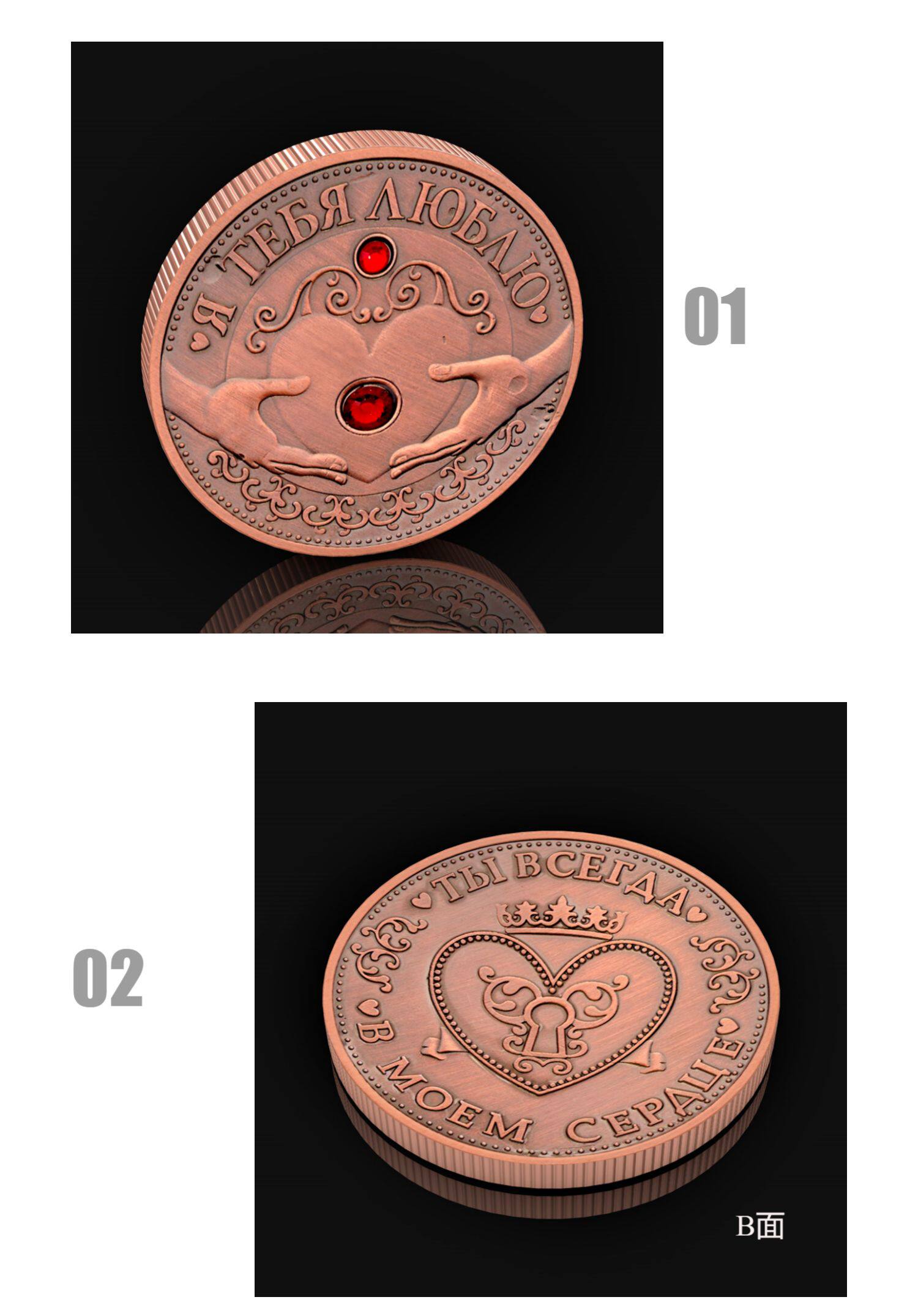 Фраза ''Я тебе люблю" нанесена багатьма мовами, тому кому б ви не подарували цю монету, він зрозуміє її значення й сенс без слів.