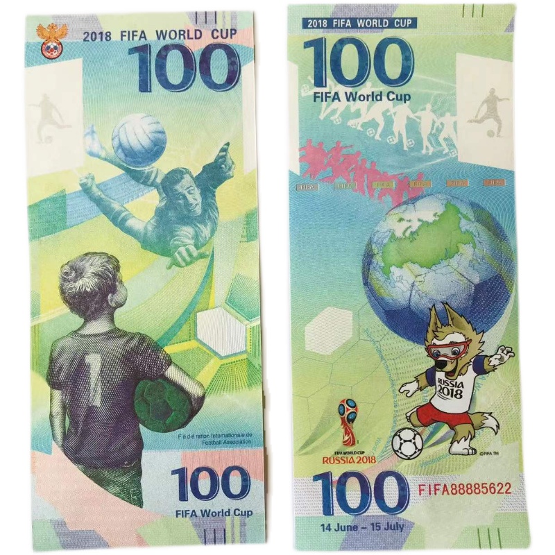 Сувенірна пам'ятна банкнота номінал 100. Чемпіонат світу з футболу 2018