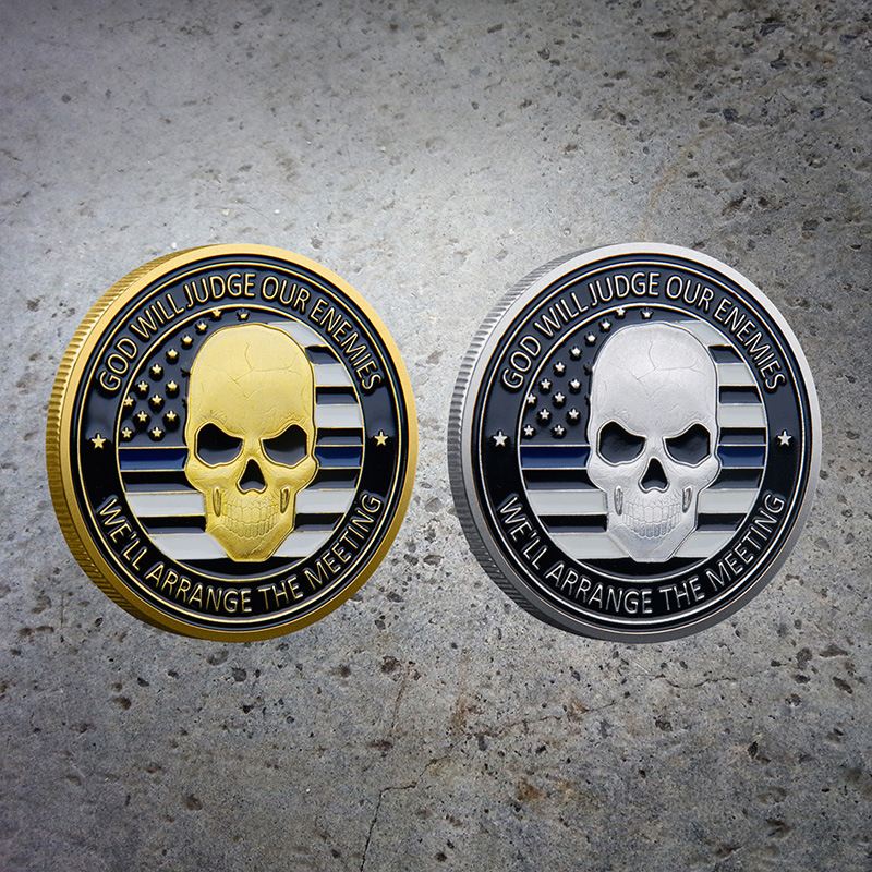 US Skull Police Officer Silver Plated Challenge Coin Saint Michael Protect Medal - Picture 2 of 16