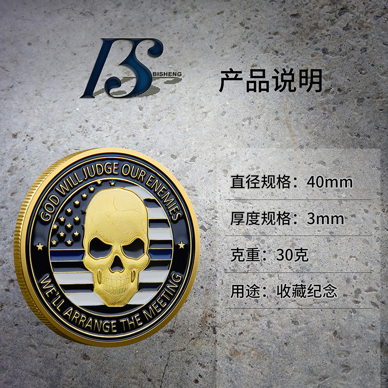 • Пам'ятна монета з Черепом, захисник поліцейських св. Михайло (оберег) голд, фото 2