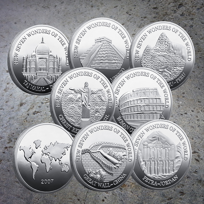 Набір Сувенірних монет "Сімь чудес світла" 2007 (7 шт. у капсулах) сильвер