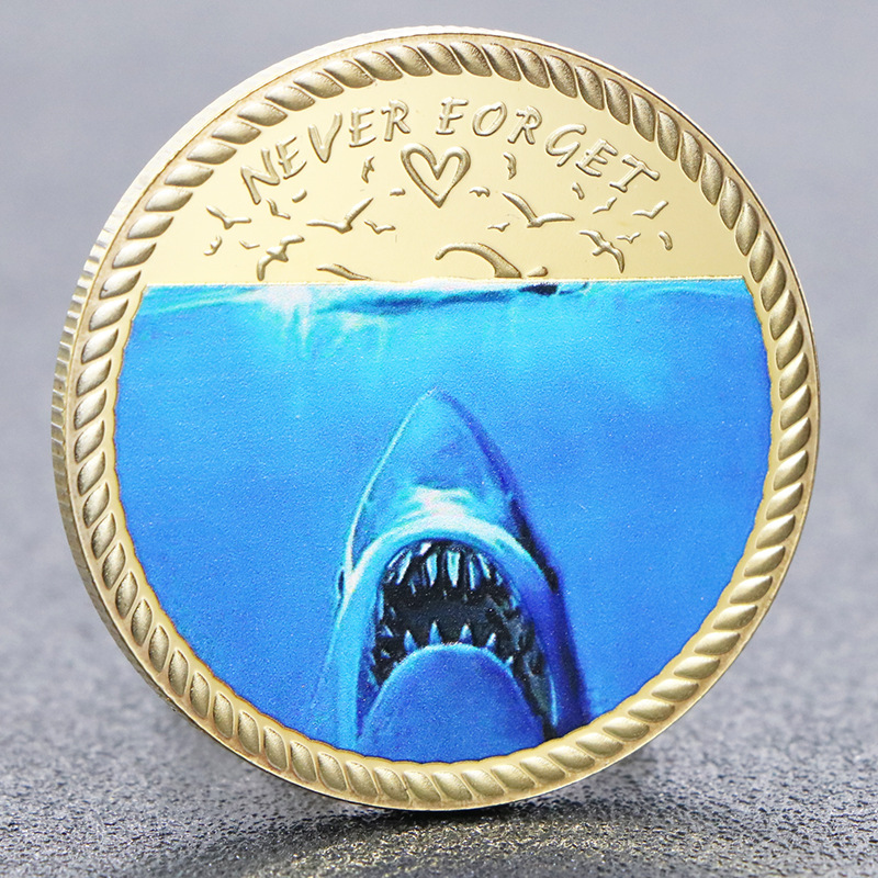 Пам'ятна монета "Ніколи не забувайте літо 1975 року" голд, Щелепи, Велика біла акула