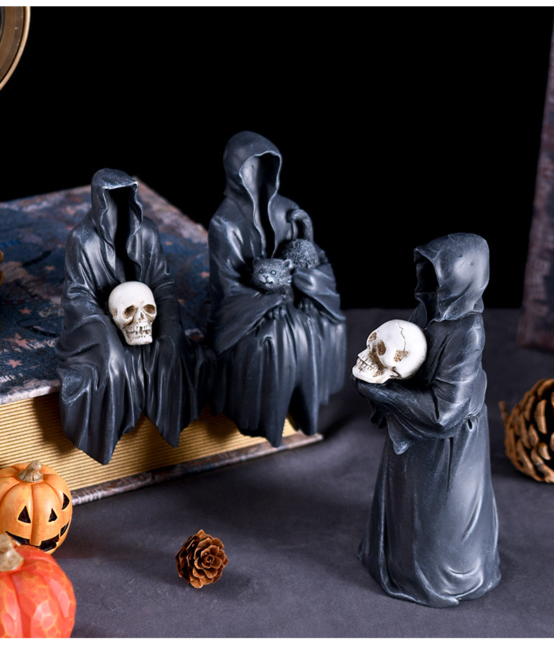 Статуетка готична Чорна мантія, Безликий ченець стоїть із черепом, Примарний чарівник