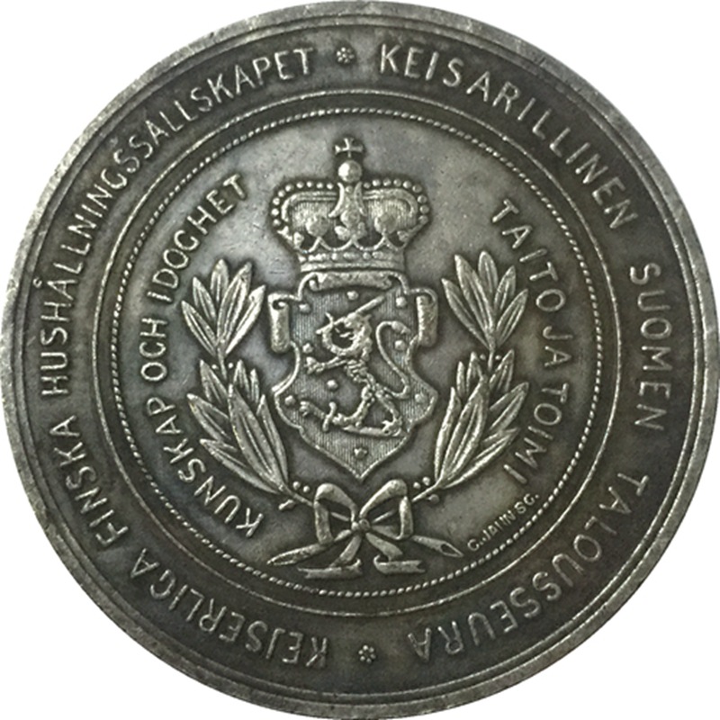 Це товариство було засноване ще у 18 столітті, до перебування Фінляндії у складі Росії. Медаль була випущена 1898 року, у період правління імператора Миколи 2. На лицьовій стороні медалі відчеплений профільний портрет Миколи 2, на зворотному боці в центрі зображений герб, увінчаний імперською короною