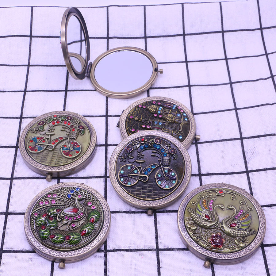 Мідне кругле збільшувальне дзеркало для макіяжу Велосипед (ф7 см). дзеркальце в сумочку.
