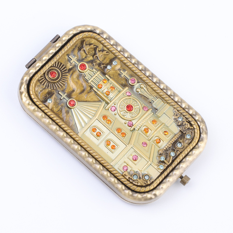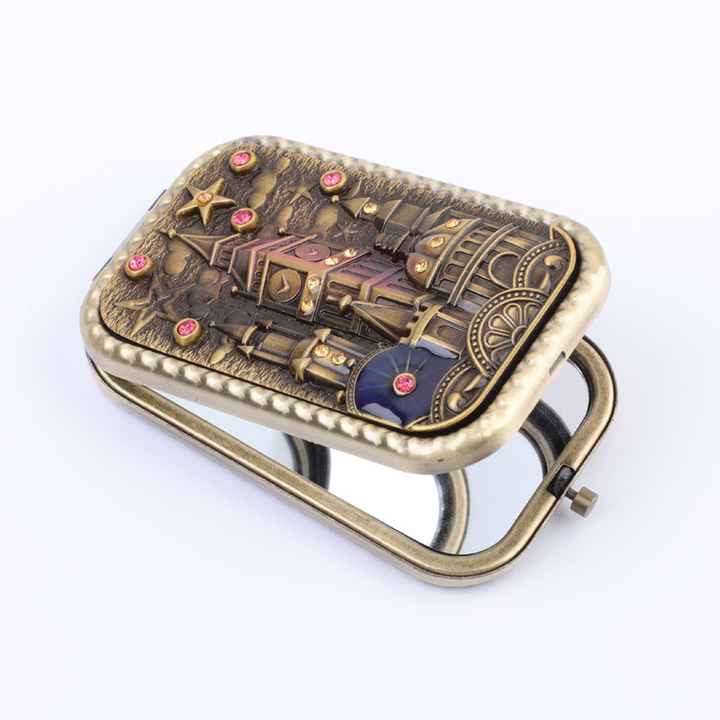 Мідне збільшувальне складане дзеркало для макіяжу (6 х 10 см). дзеркальце в сумочку.