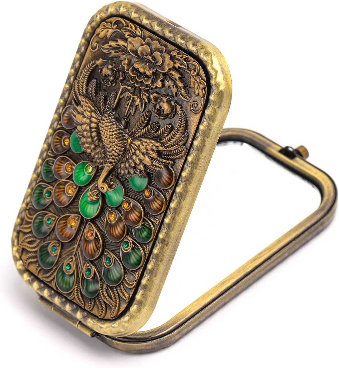 Це косметичне дзеркало має гарний візерунок павича, символ шляхетності й елегантності, інкрустоване крихітними діамантами, барвисте й елегантне. Це ідеальне доповнення до вашого гаманця та сумки, його стильний дизайн ідеально підходить для будь-якого випадку, від повсякденного використання до вечірок, побачень чи подорожей.