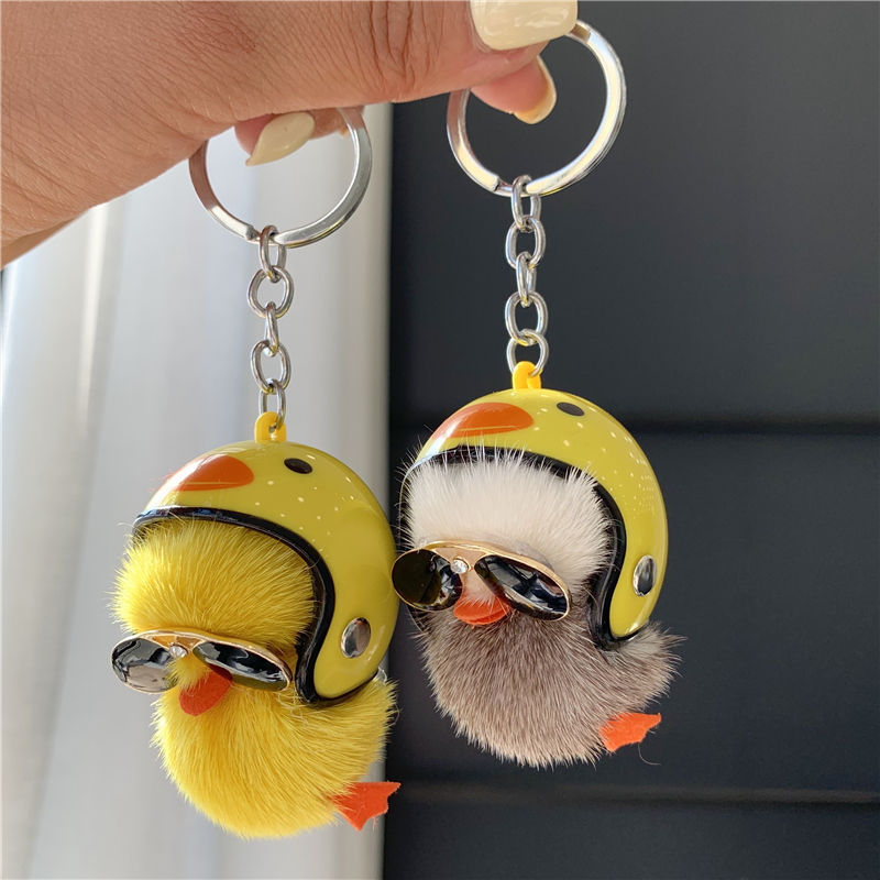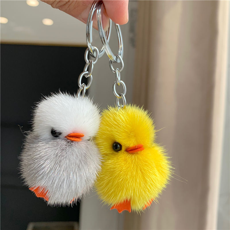 Милий брелок у формі Курча з хутра, підвіска на сумку, автомобільний аксесуар
