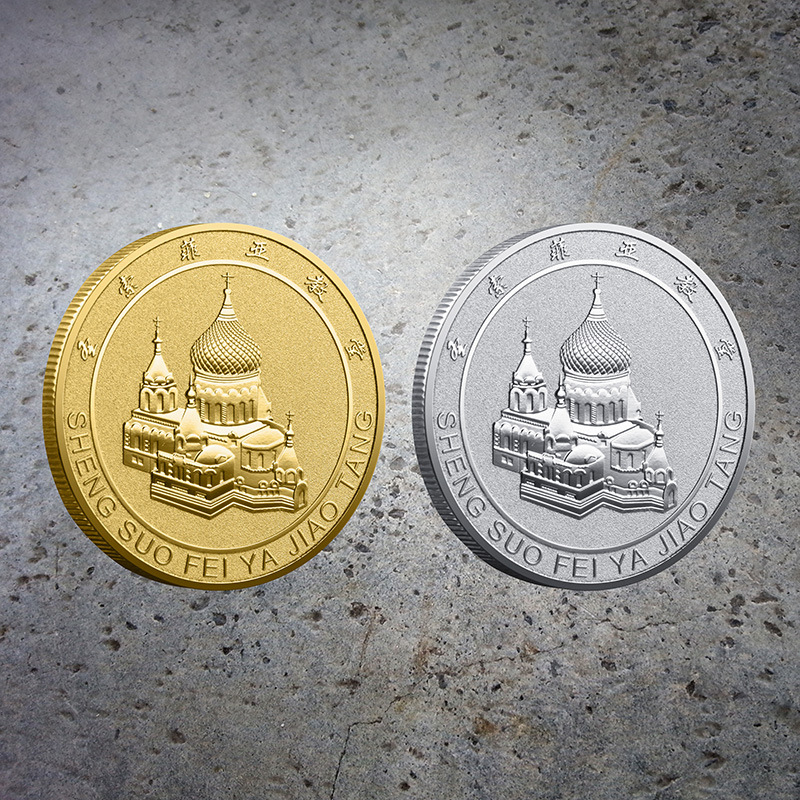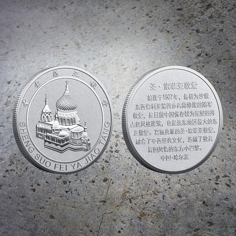 Сувенір Медаль монета Софійський собор у Харбіні. сильвер. Православні святилища сходу