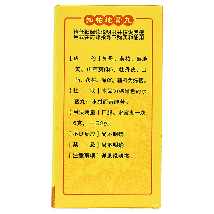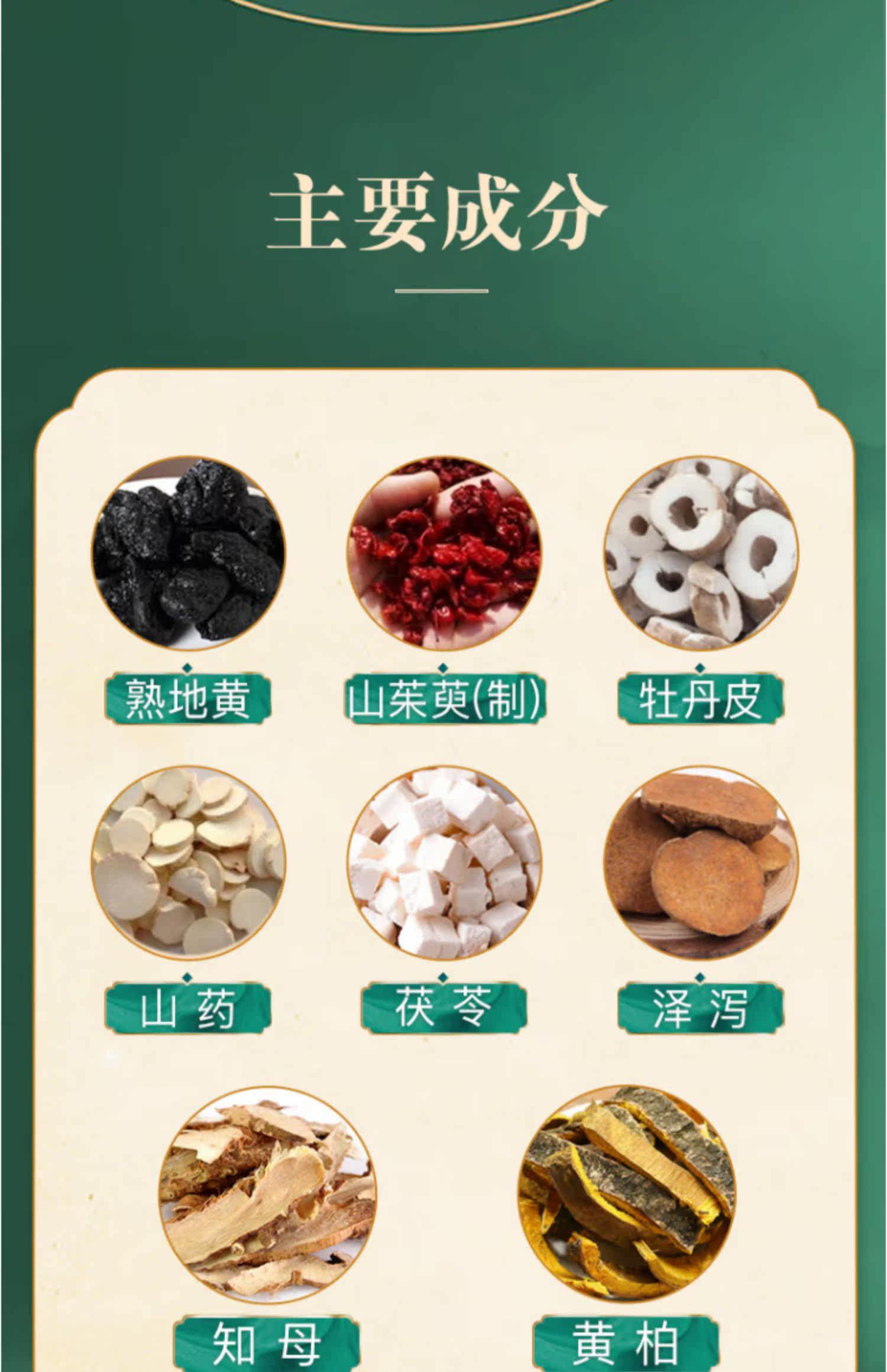 Склад: анемаррена асфоделоподібна (чжиму), оксамит амурський (хуанбай), оброблений корінь реманії (шудихуан), смажене кореневище діоскоеї китайської (шаньяо), шкірка півонії (муданьпі), висушені кореневища частухи (цзасесе) кизила лікарський (шаньчаючий), гриб фулін, мед.
