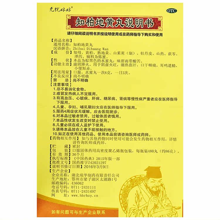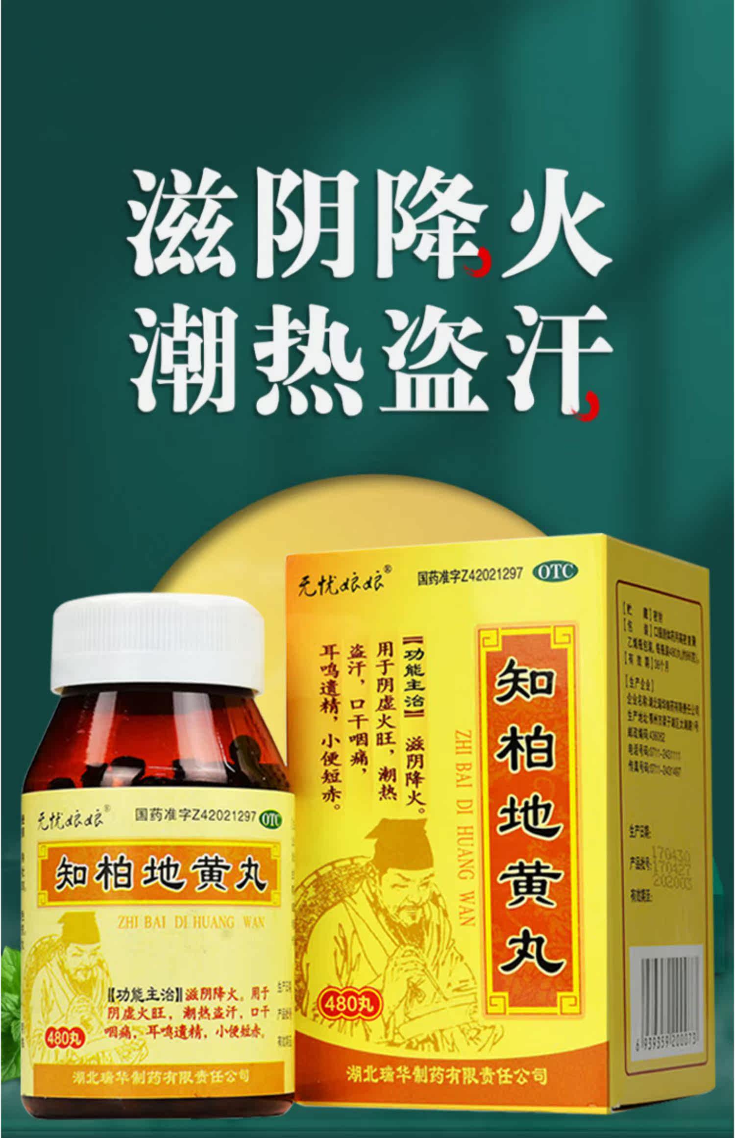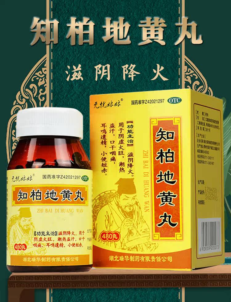 Пілюлі «Чжибай Дихуан Вань»/Zhibai Dihuang Wan — антибактеріальні, протизапальні та заспокійливі. Покращують функцію нирок. Знижують кров'яний тиск. Понижують рівень цукру.