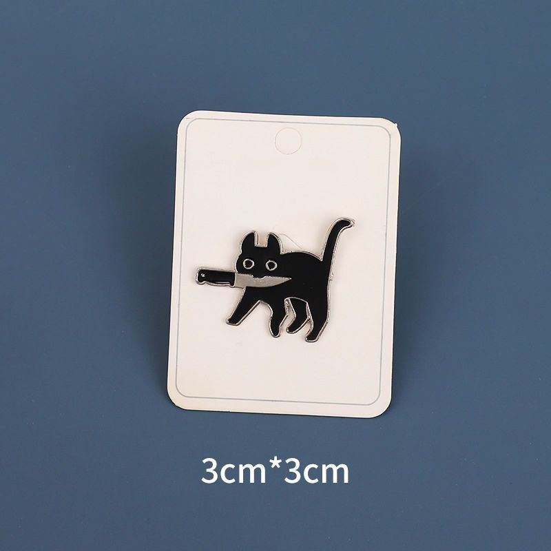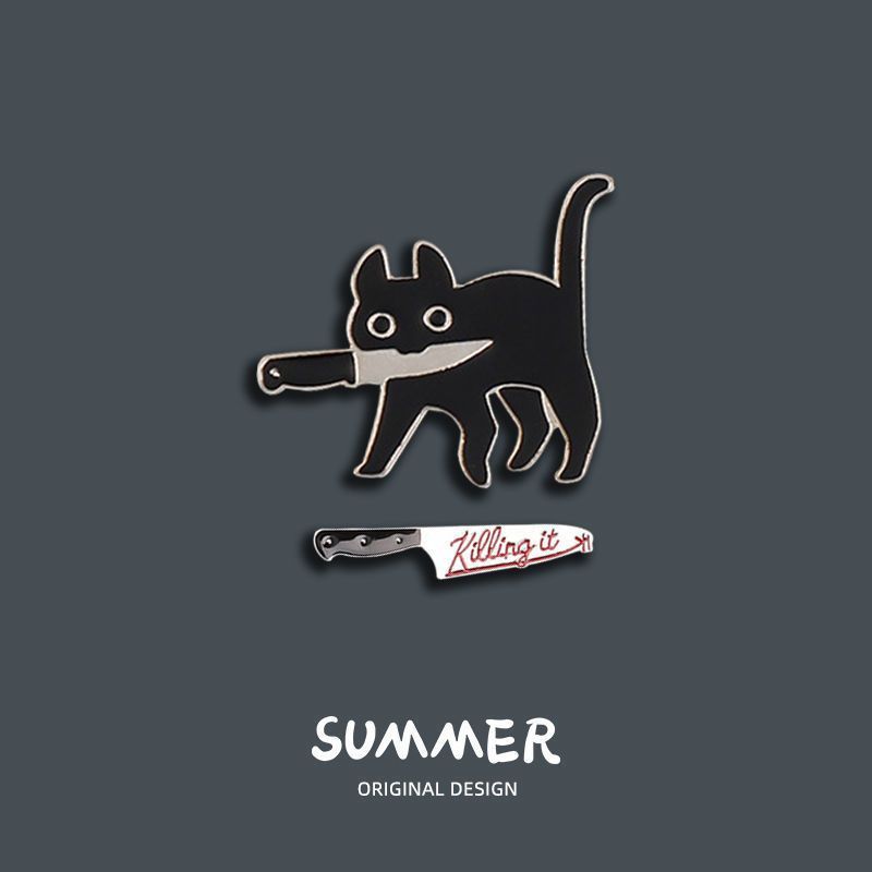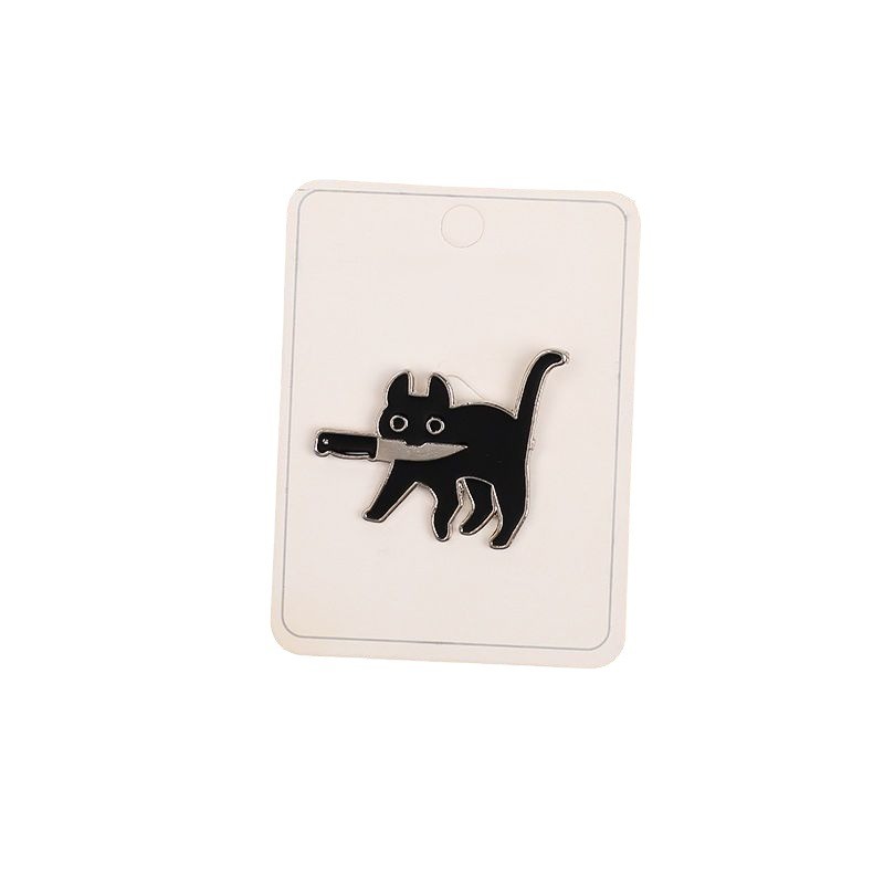 Кумедний пін у формі кота з ножем, цей значок із задоволенням прикрасить твій рюкзак, футболку або джинсовку.
