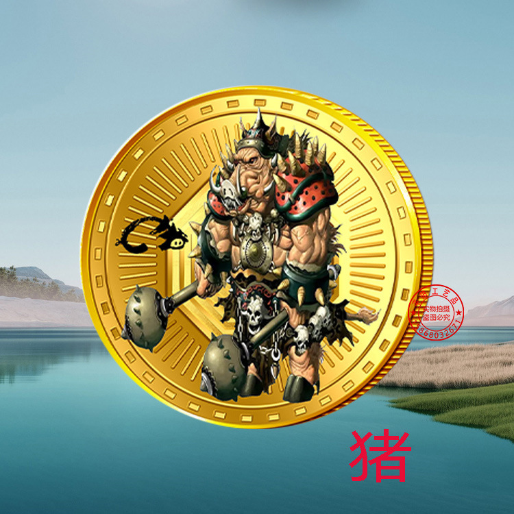 Сувенір монета знак Зодіака "Пітух" стиль Японське аніме. 40*1.5мм Голд (лунний календар)