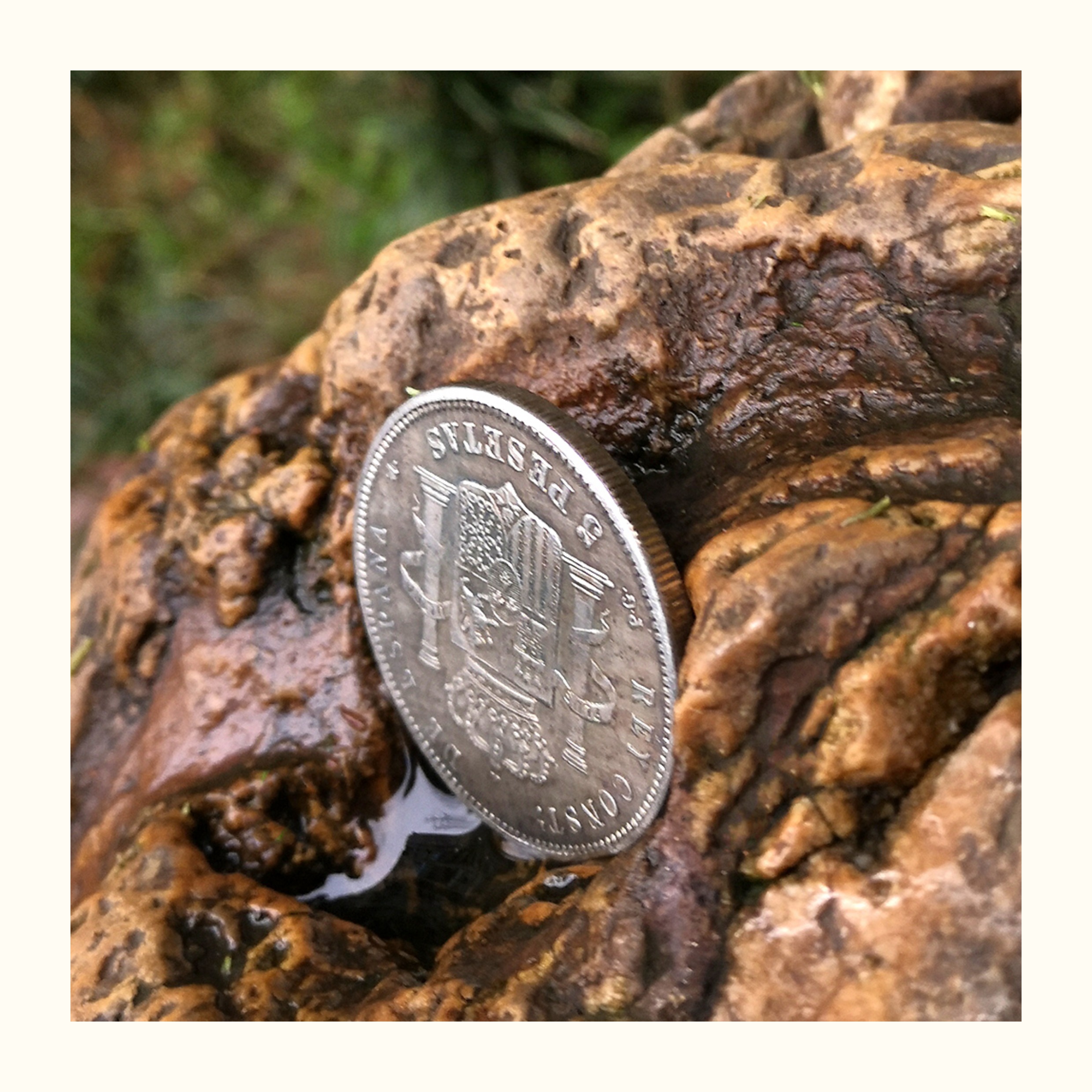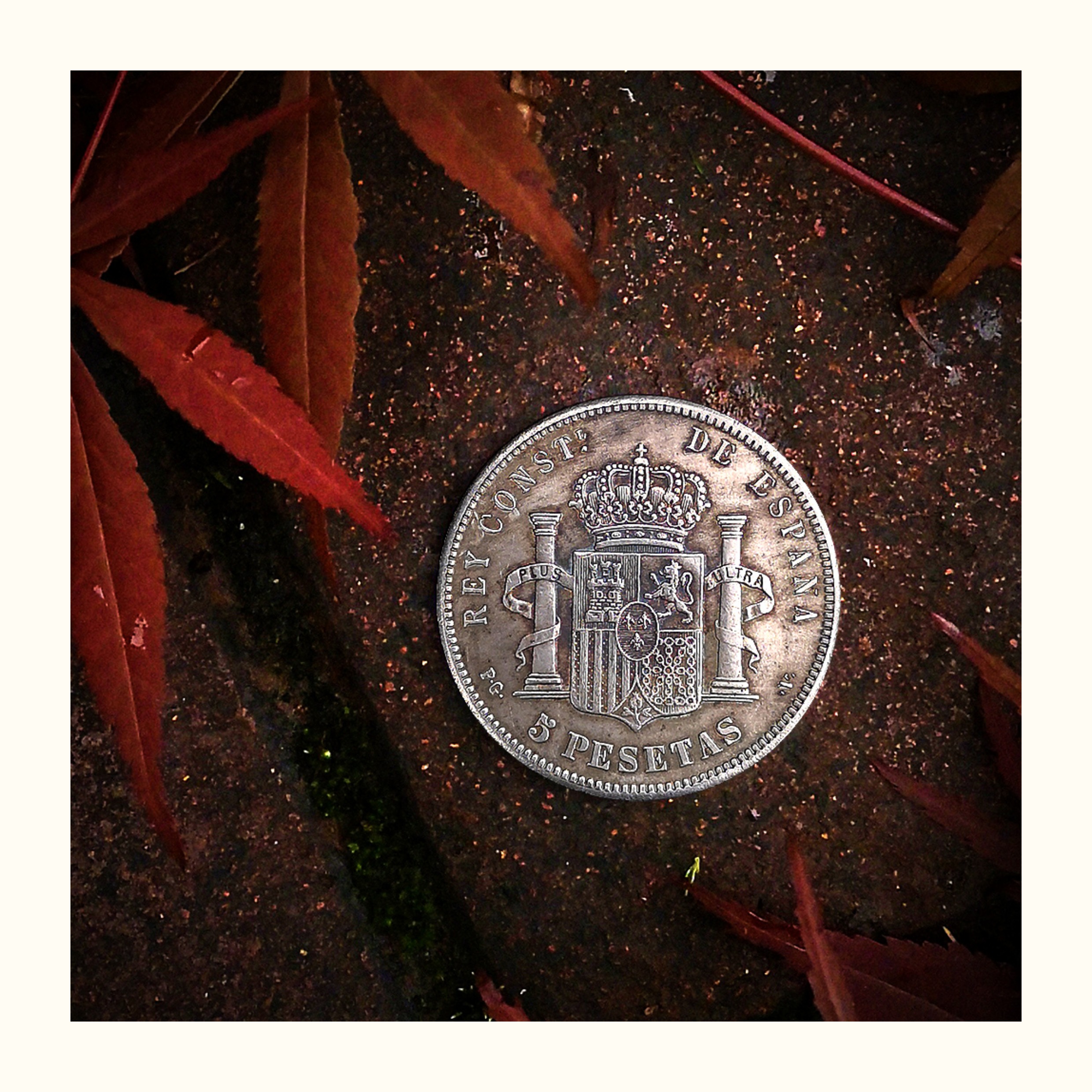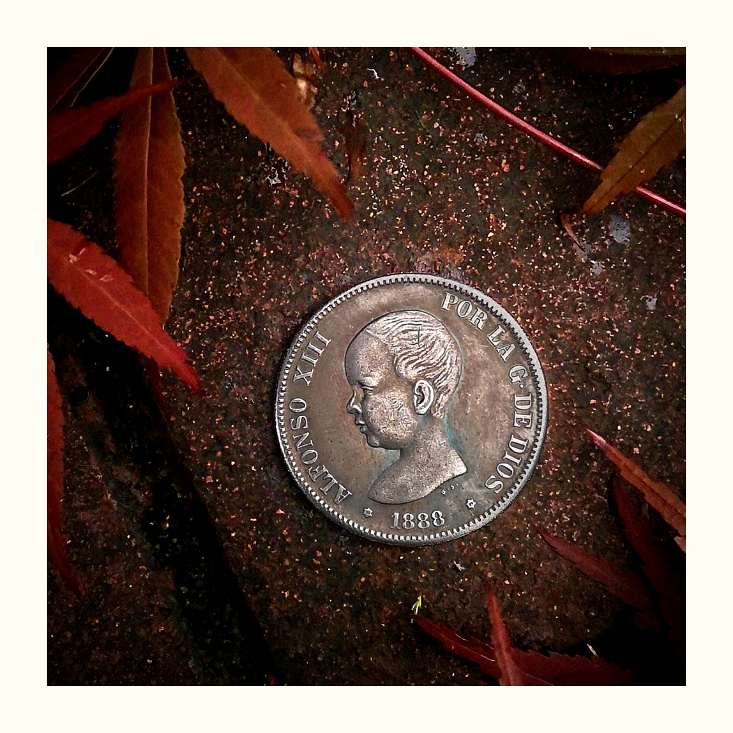 Монета стандартного поводження часів Альфонсо ХIII, випущена 1888-1892г. Номінал 5 песет, срібло 900 проби вагою 25 грамів.