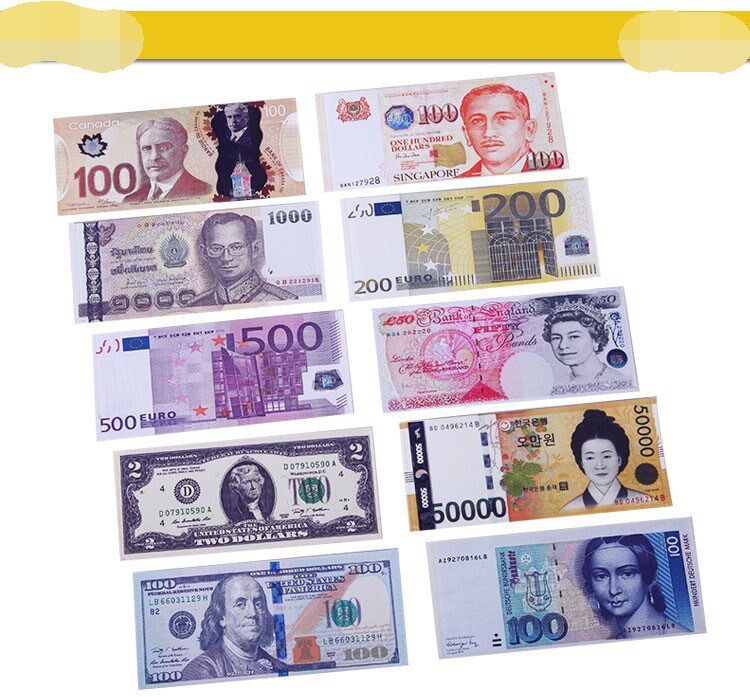 Моделі — 1, 2, 5, 10,20, 50 дол, 100 дол три різновиди, 20, 50, 100, 200 і 500 євро, 20, 50 фунтів, 1000ult. (Нашну уточнюйте заздалегідь!)