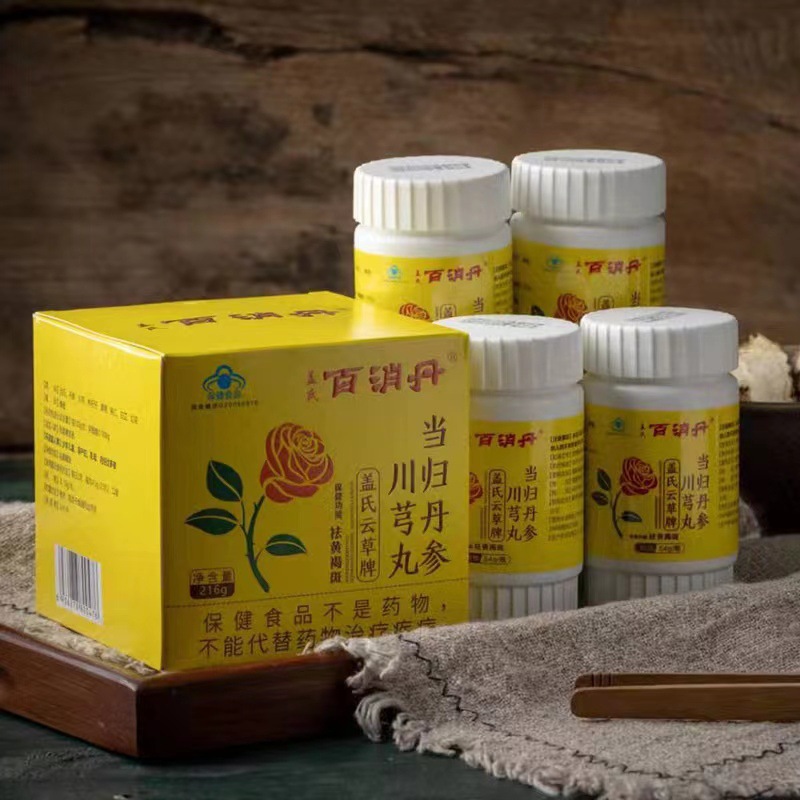 Основними компонентами є: горець, мушмула, дягель, сафлорове, шовковиця, корінь дягелю, корінь півонії білого, Rehmannia, осла приховати желатин, алое вера порошок та інші 45 трав