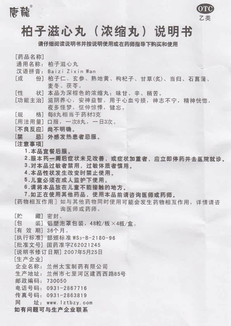 Байцзы Bai Zi Yang Xin Wan 拍子I心丸 — ефективний і безпечний препарат давньокитайської медицини, створений виключно на основі натуральних компонентів. Завдяки тонізувальній дії на внутрішнє Інь Байзці широко використовують для лікування патології нервової та серцево-судинної системи.