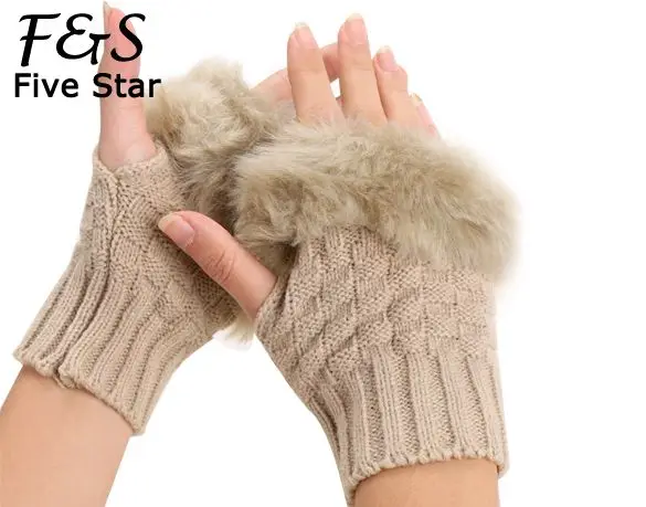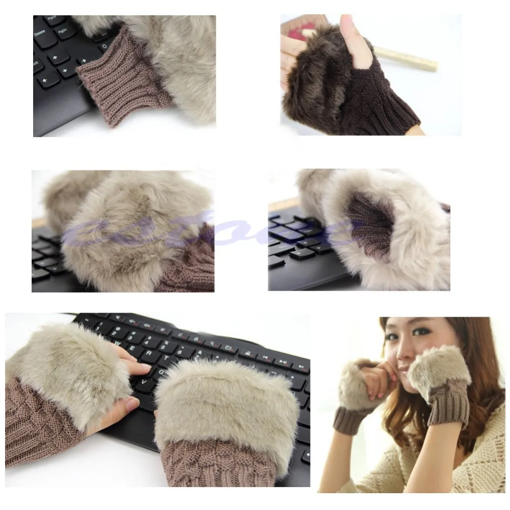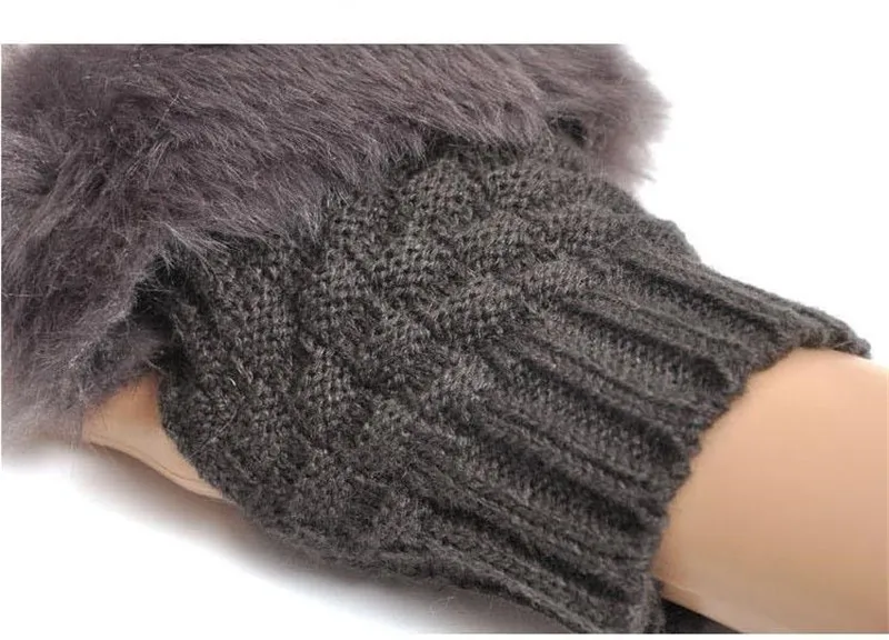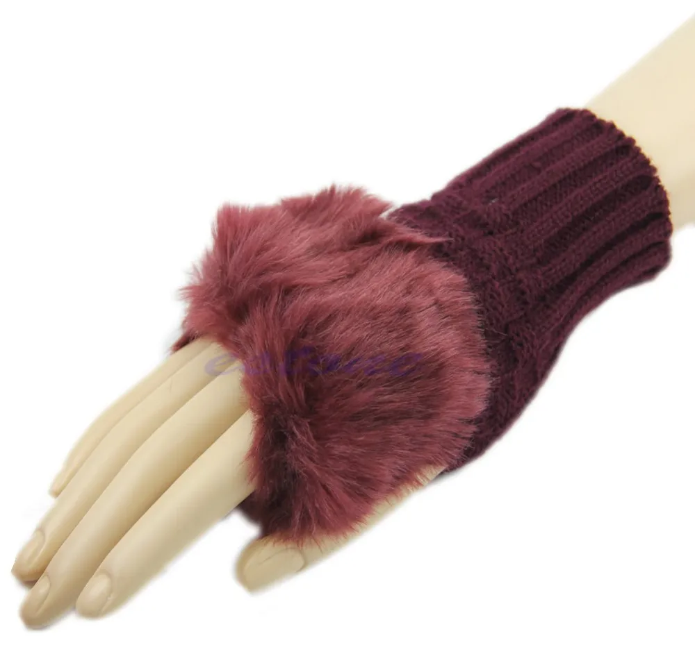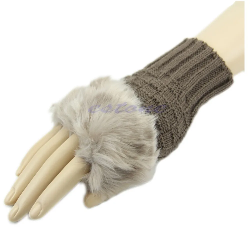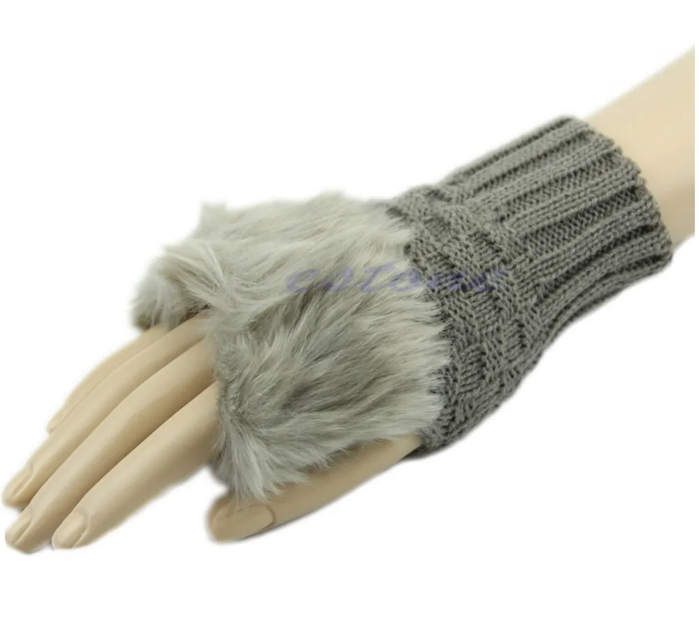 Жіночі в'язані рукавички без пальців із хутром, рукавиці, мітенки