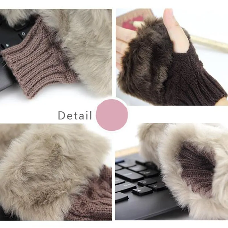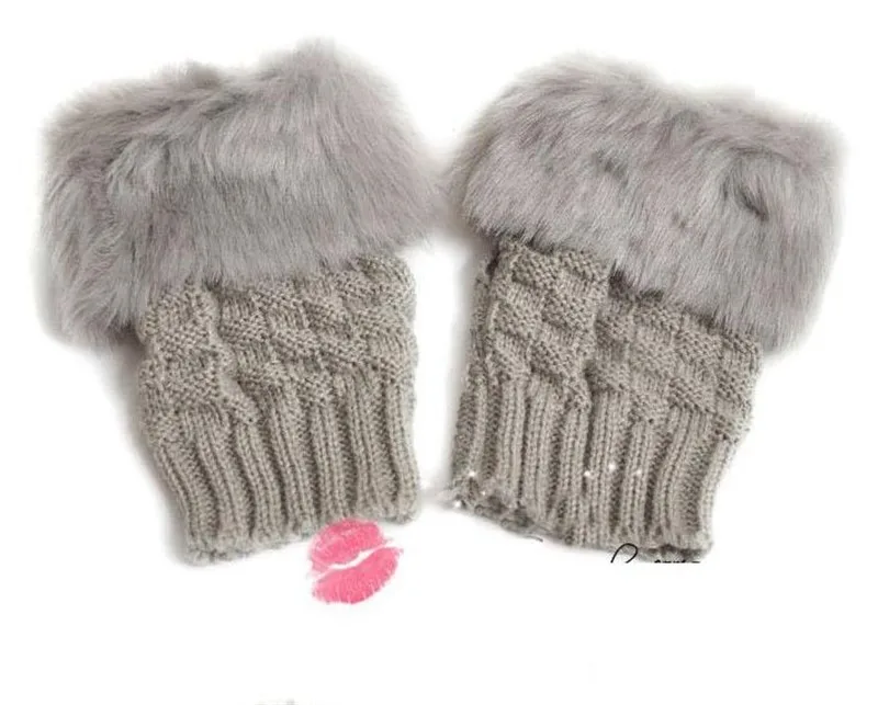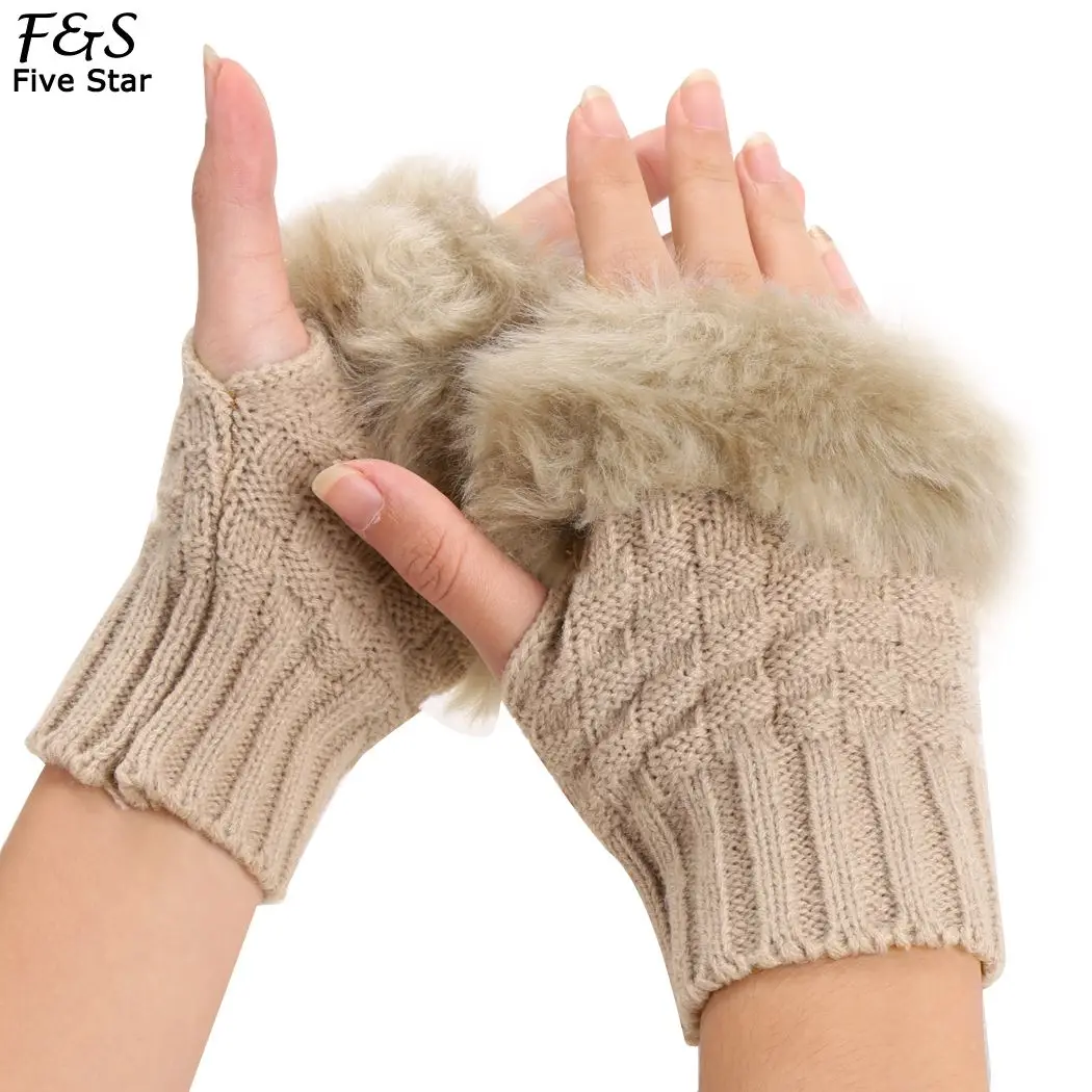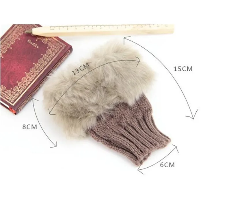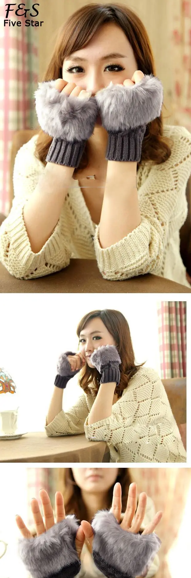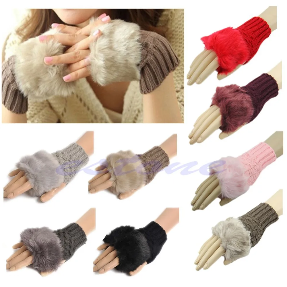 Жіночі в'язані рукавички без пальців із хутром, рукавиці, мітенки