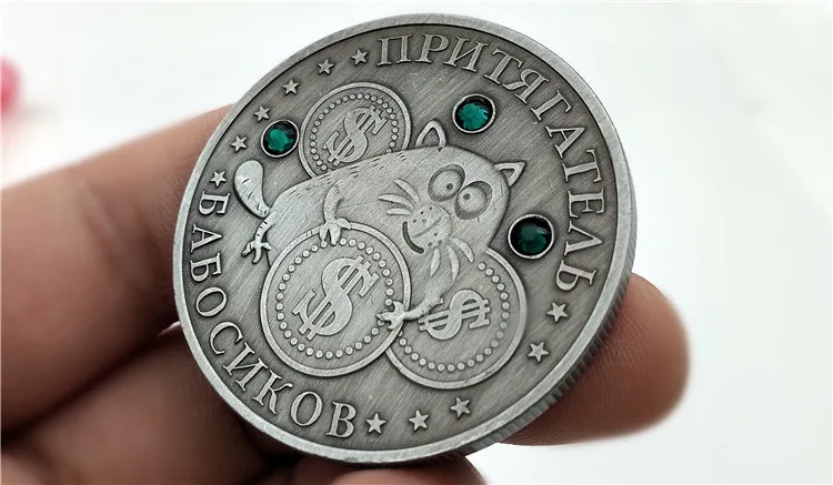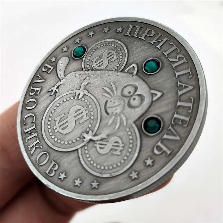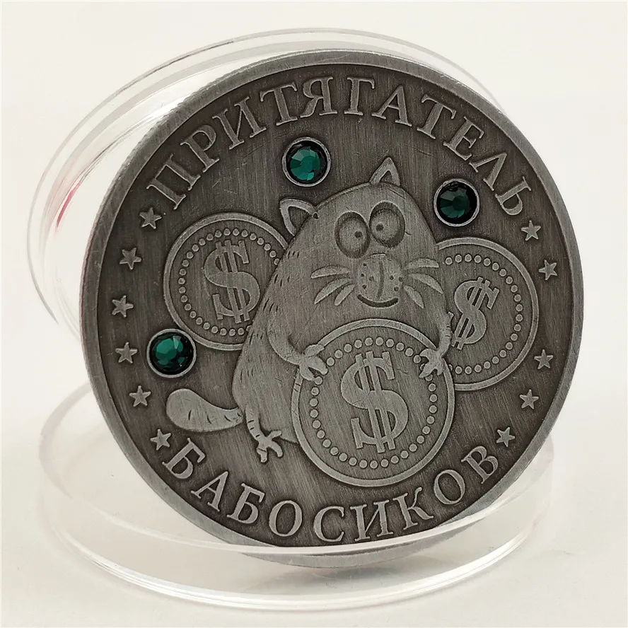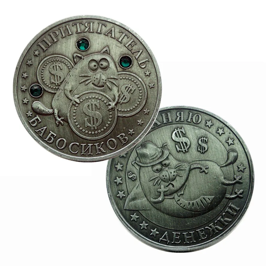 Пам'ятна ексклюзивна монета в гаманець "Притягувач бабосиків", Монета "На удачу" (сірий колір)