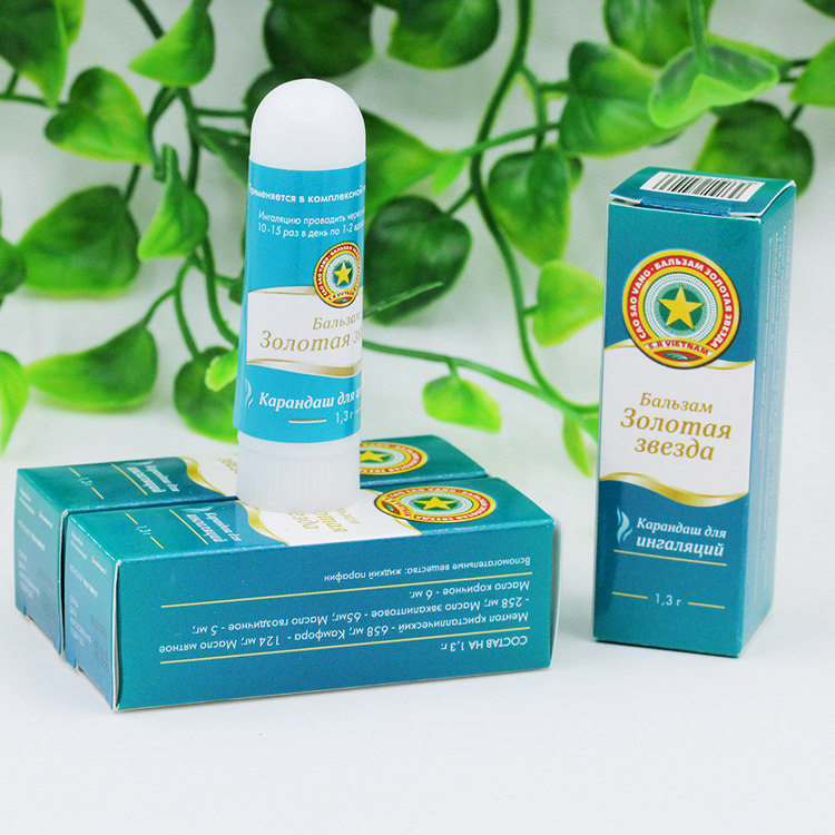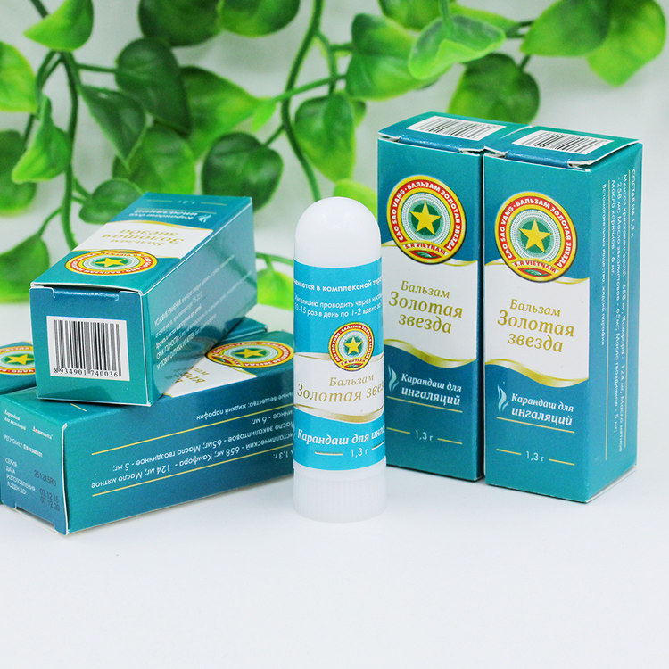 «Бальзам Золота зірка» олівець для інгаляцій являє собою пластмасовий тюбик із ковпачком і фільтром, що є всередині тюбика, просоченим інгредієнтами. На ковпачок інгалятора наклеєна паперова етикетка. Олівець для інгаляцій разом з інструкцією із застосування поміщають у картонну пачку.
