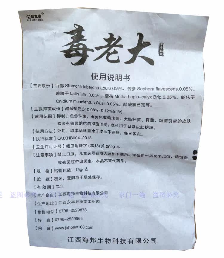 Склад: міконазолу нітрат 2% (основа), отрута скорпіона (сиду), оксамит китайський (хуанбай), листоня китайська (туцзинпі), висушена кора коренів ясенця (байньпі), висушені зрілі плоди жгун-корня Монньє (шечуанцзи), липучка ожина юна (наньхехуха), дихач китайський (дангуй), ментол (бохенао), міконазолу нітрат тощо.