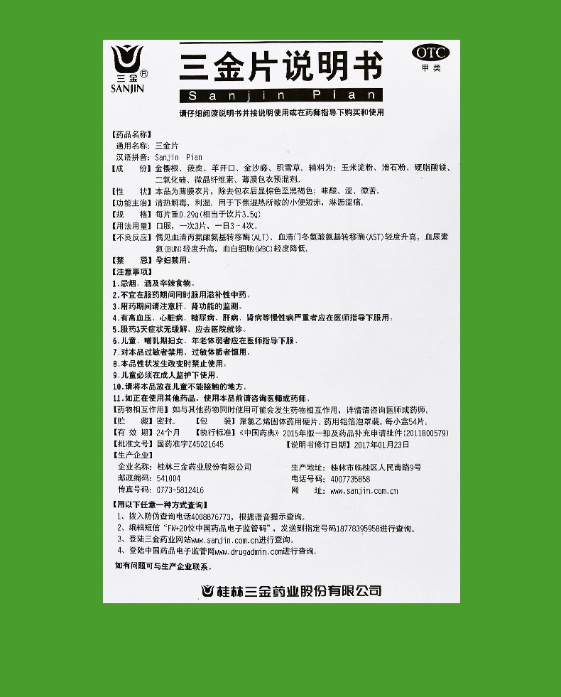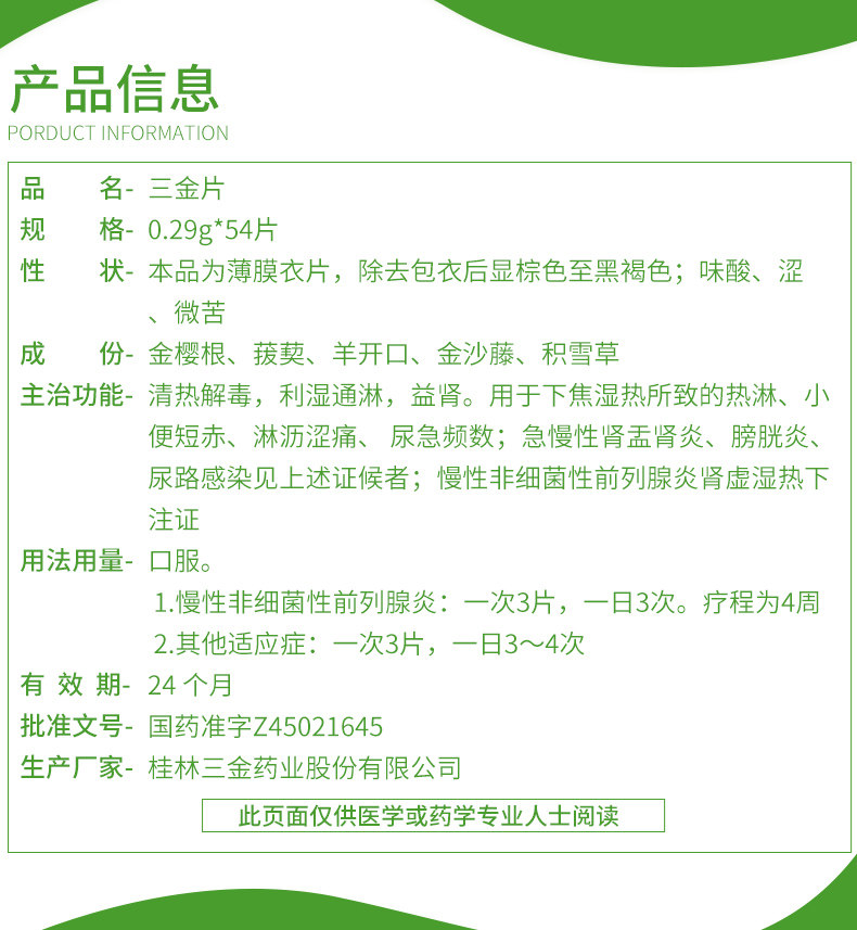 Препарат Саньцзінь пянь — Sanjin pian 54шт — для інфекцій сечовивідних шляхів