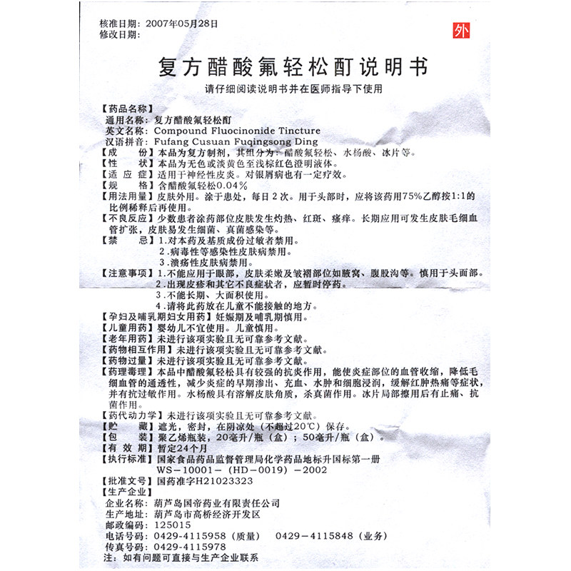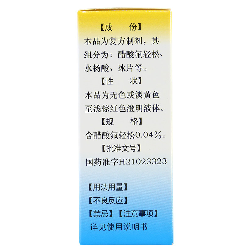 Склад: деіонізована вода, етанол, фториста кислота, fluocinonide, саліцилова кислота, камфора, боронеол, екстракти трав китайської народної медицини.