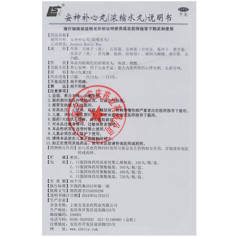 Пилюлі Ашень Бусінь Anshen Buxin Wan інструкція із застосування: вживайте тричі на день по 15 пиляль щоразу, запиваючи водою. Рекомендований курс 20-30 днів (4-7 паковань). Дотримуйтеся таких правил: