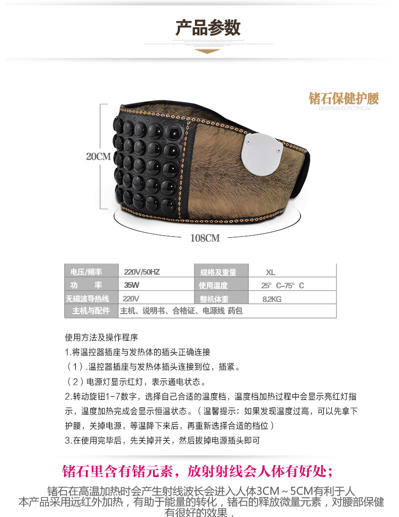 Біологічно активний магнітний турмаліновий пояс із системою прогрівання виготовлений з унікальним мінеральним каменем — турмалін, який дає глибоке інфрачервоне тепло та негативні іони.