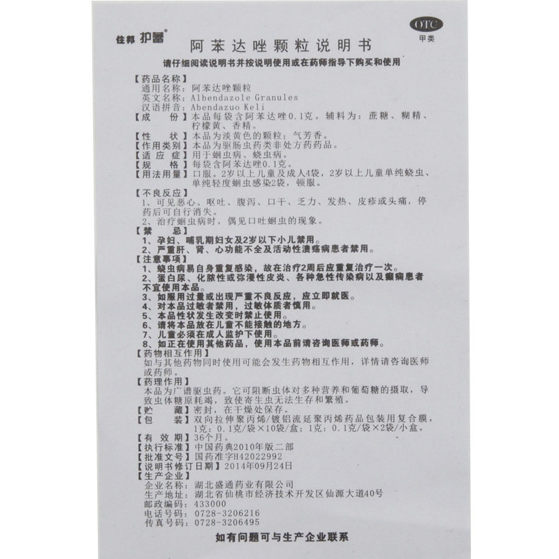 [Основні інгредієнти] Цей продукт містить 0,1 г альбендазолу на мішок.