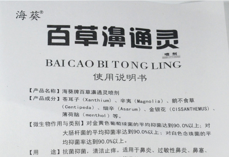Свойства: Має зовнішню лікувальну дію, знімає жар, виводить токсичні речовини, знімає симптоми застуди та нежитю, відновлює нюх. Спрей використовується для лікування різних захворювань носа.