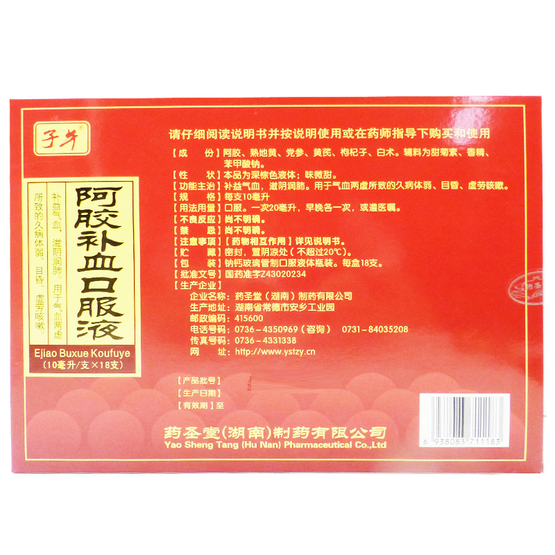Еліксир молодості та довголіття (Ejiao Buxue Koufuye), 18 фл. по 10 мл у пакованні